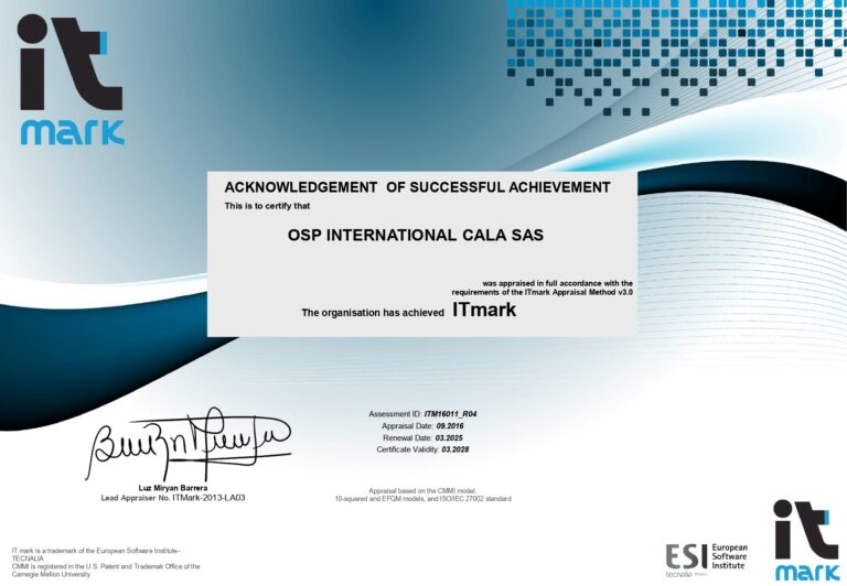 El pasado mes de junio de 2025, OSP International suscribió un contrato con el objetivo de suministrar a La Previsora S.A. Compañía de Seguros, en modalidad de arrendamiento, una plataforma